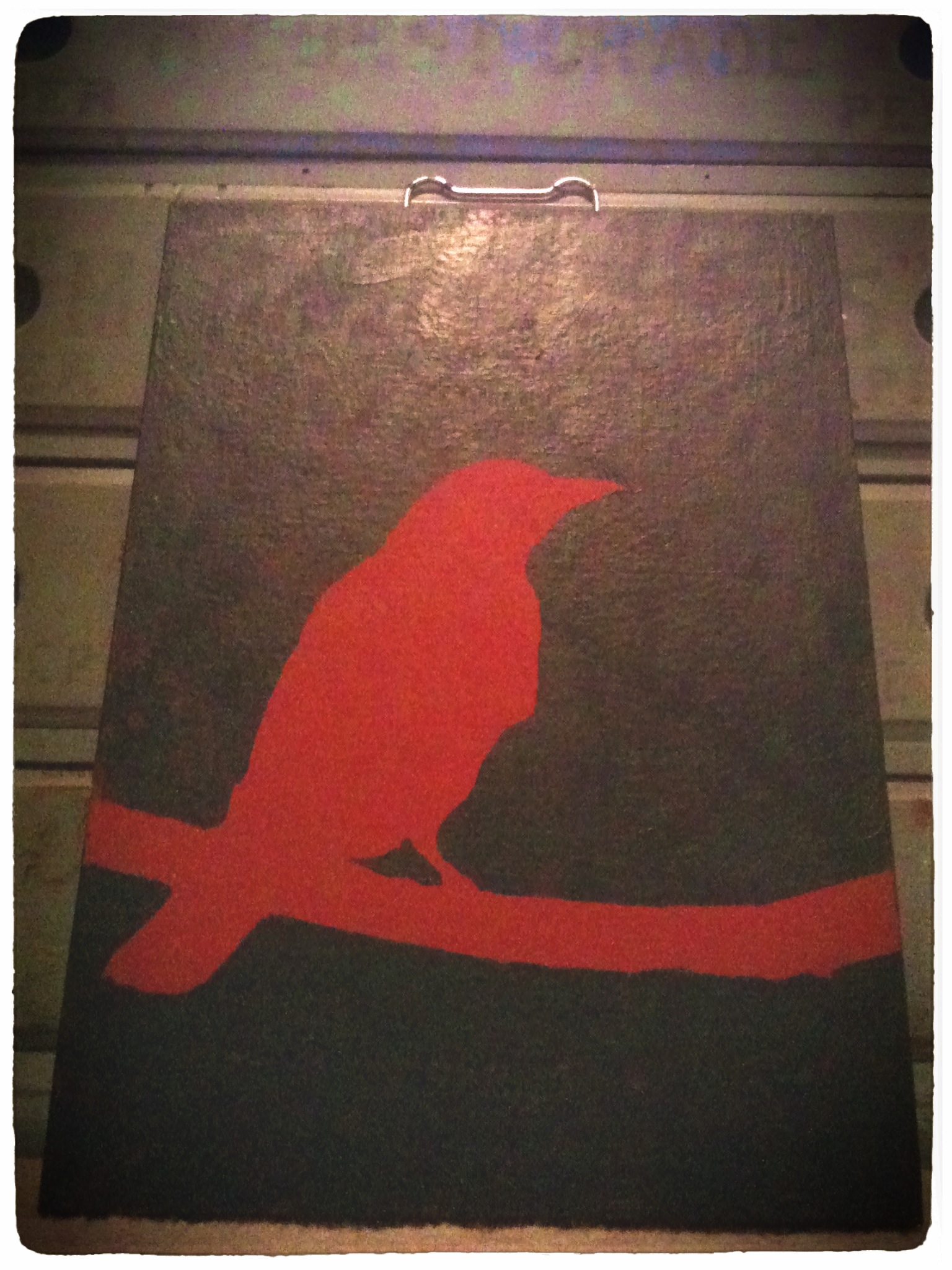 I suspect I was supposed to paint over the old paintings with gesso, but all I had was some leftover beige ceiling paint and some red latex from another project. Two nights, two coats of paint.