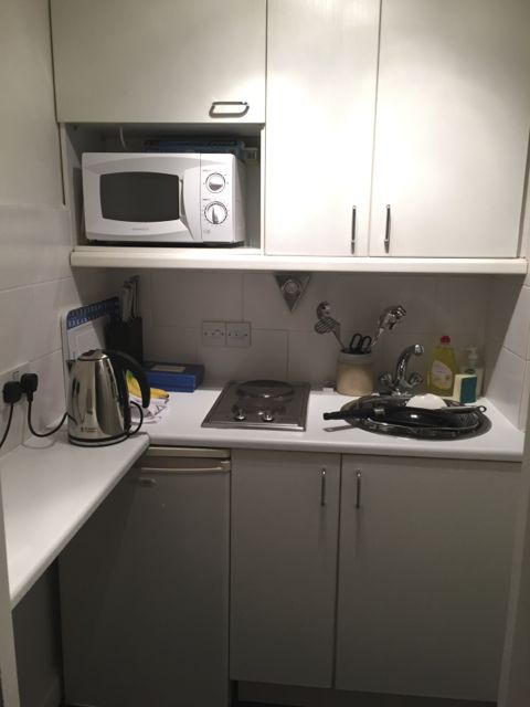 The storage room contains a kayak, a couple of wetsuits, a few dishes, a plastic box of Christmas decorations, miscellaneous garage stuff and most of the husband’s books.