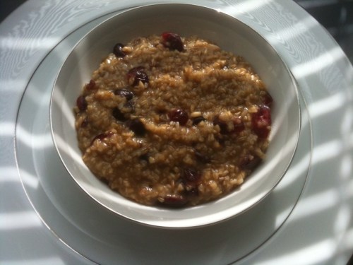 But for breakfast? Oatmeal. Not instant. Sometimes steel-cut. Topped with cinnamon, walnuts and raisins.