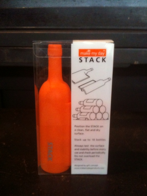 When we were in New York City in early December, I saw this nifty little device in Pylones that allows you to stack up to 10 bottles of wine safely and efficiently. I realize that other people have wine racks on their countertops and walls and even on top of their kitchen cabinets, but proper wine storage demands protection from light and temperature variations. Thus, most of our everyday wine (“everyday wine” … we sound so sophisticated) is stored in the bottom of the pantry, far away from the stove and other sources of heat.